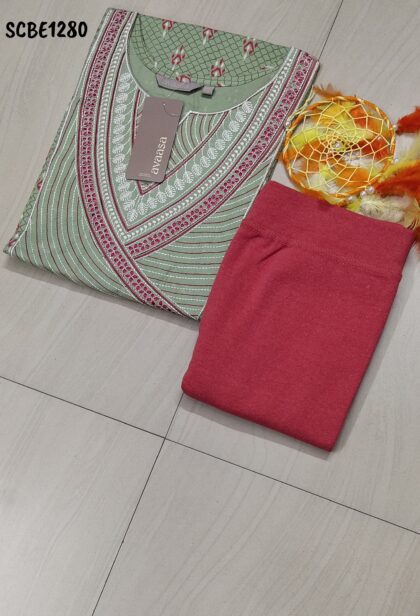 EMBROIDERY KURTI + FREE SIZE JEGGIN (Hip Size : 28-34 inch) & Ankle Length : 37inch